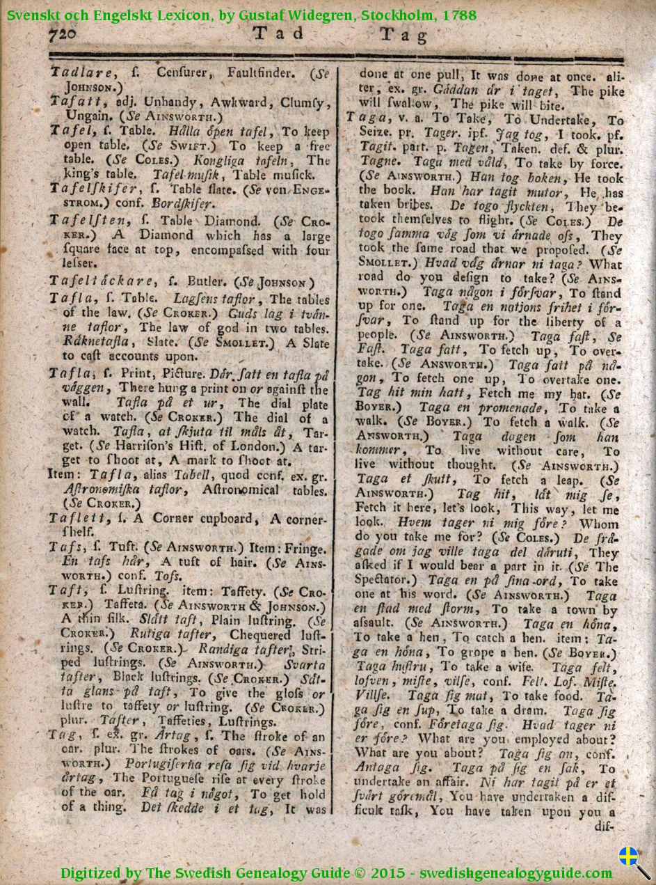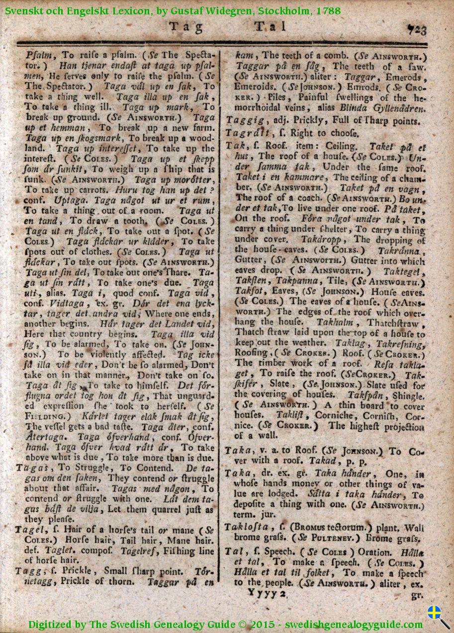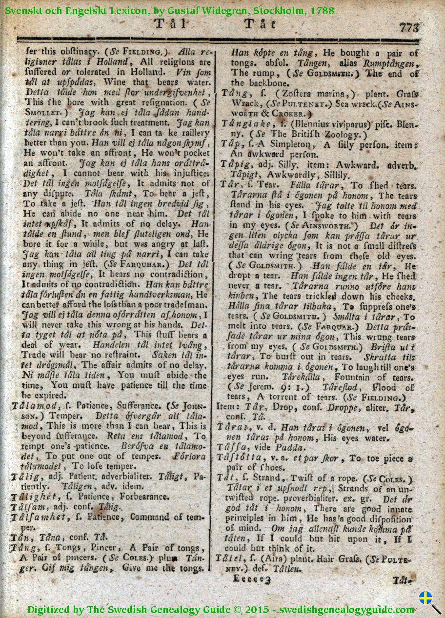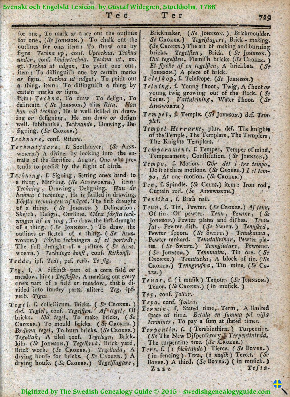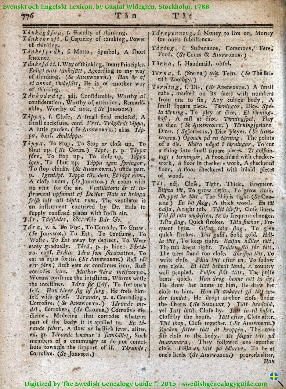 1788 Swedish English Dictionary – Letter T