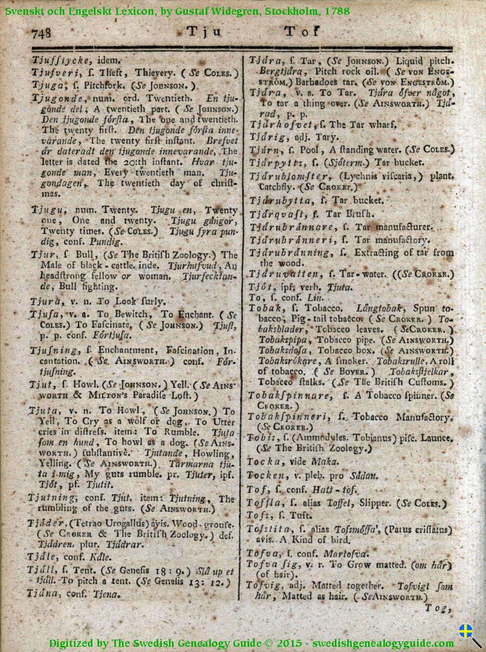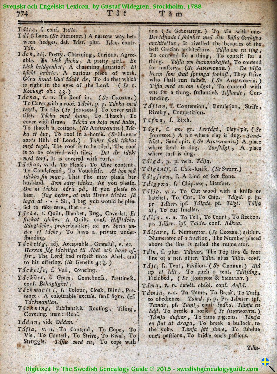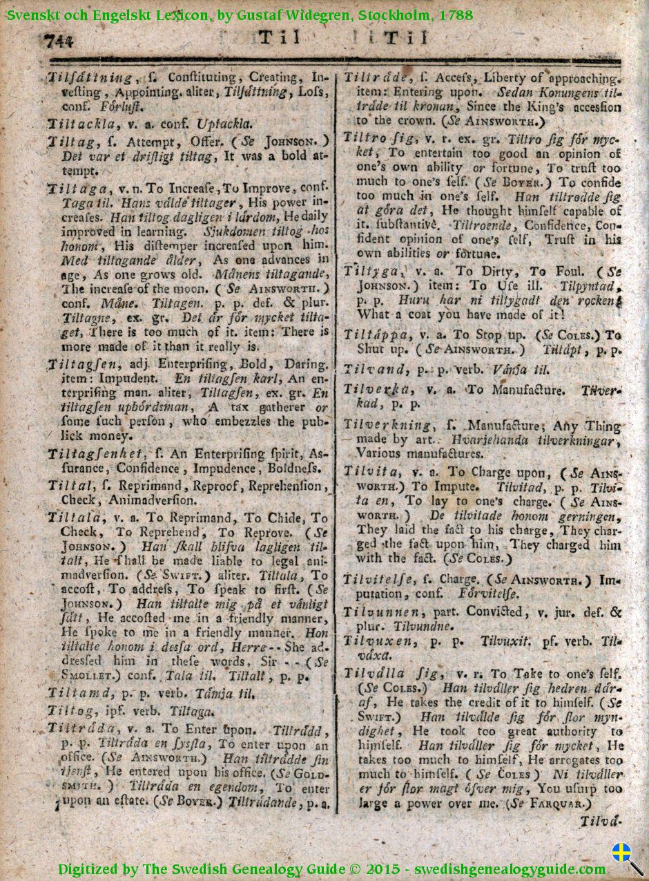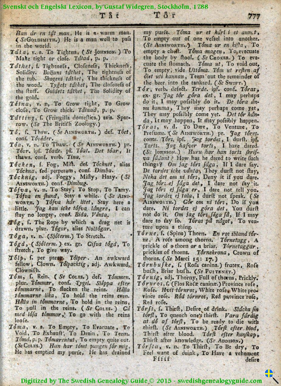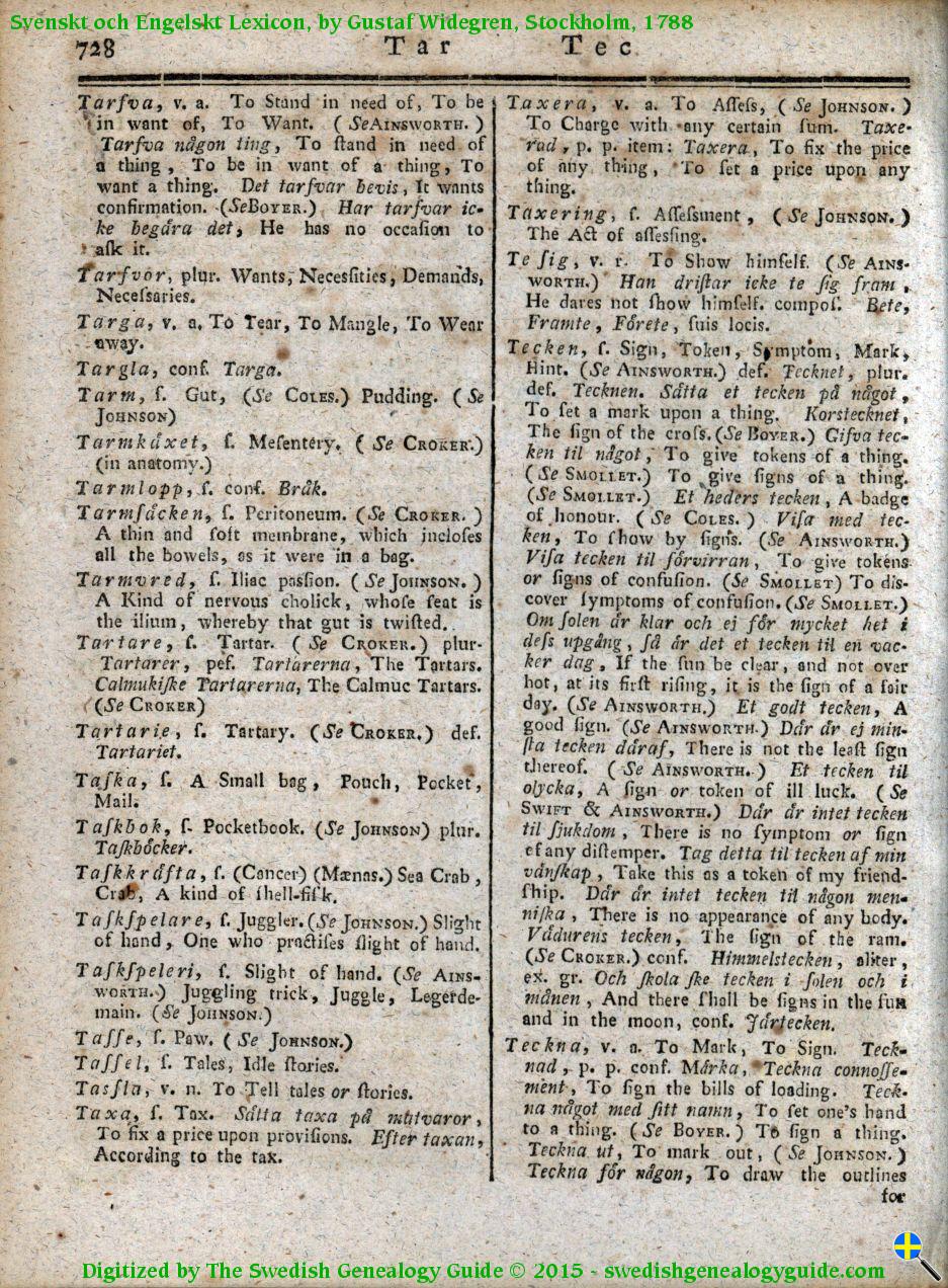 1788 Swedish English Dictionary – Letter T