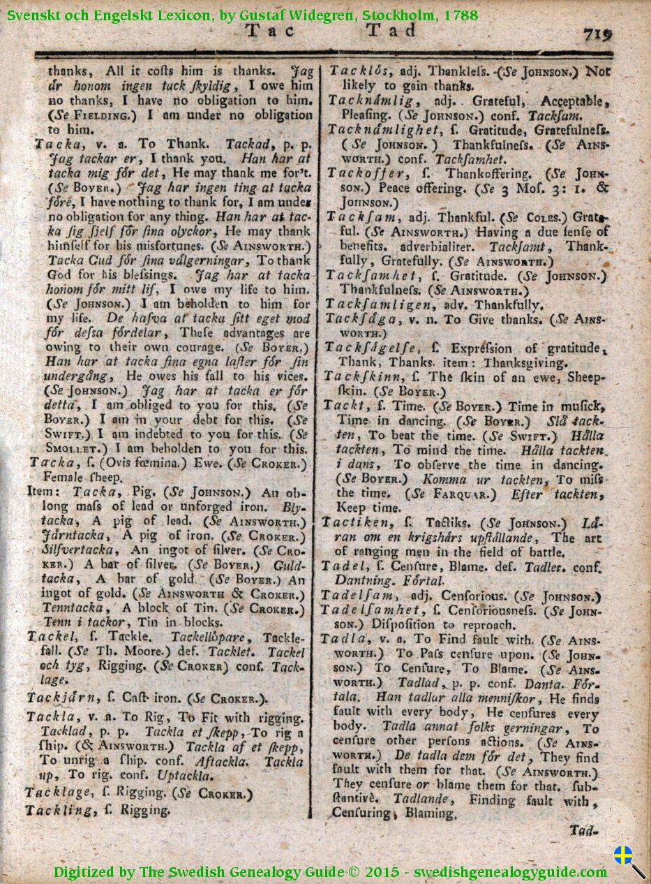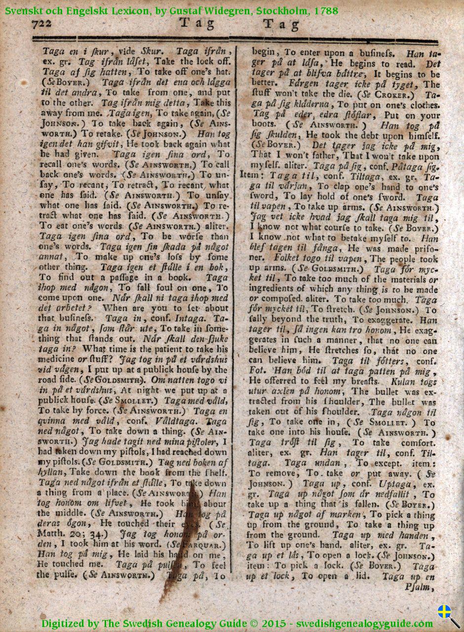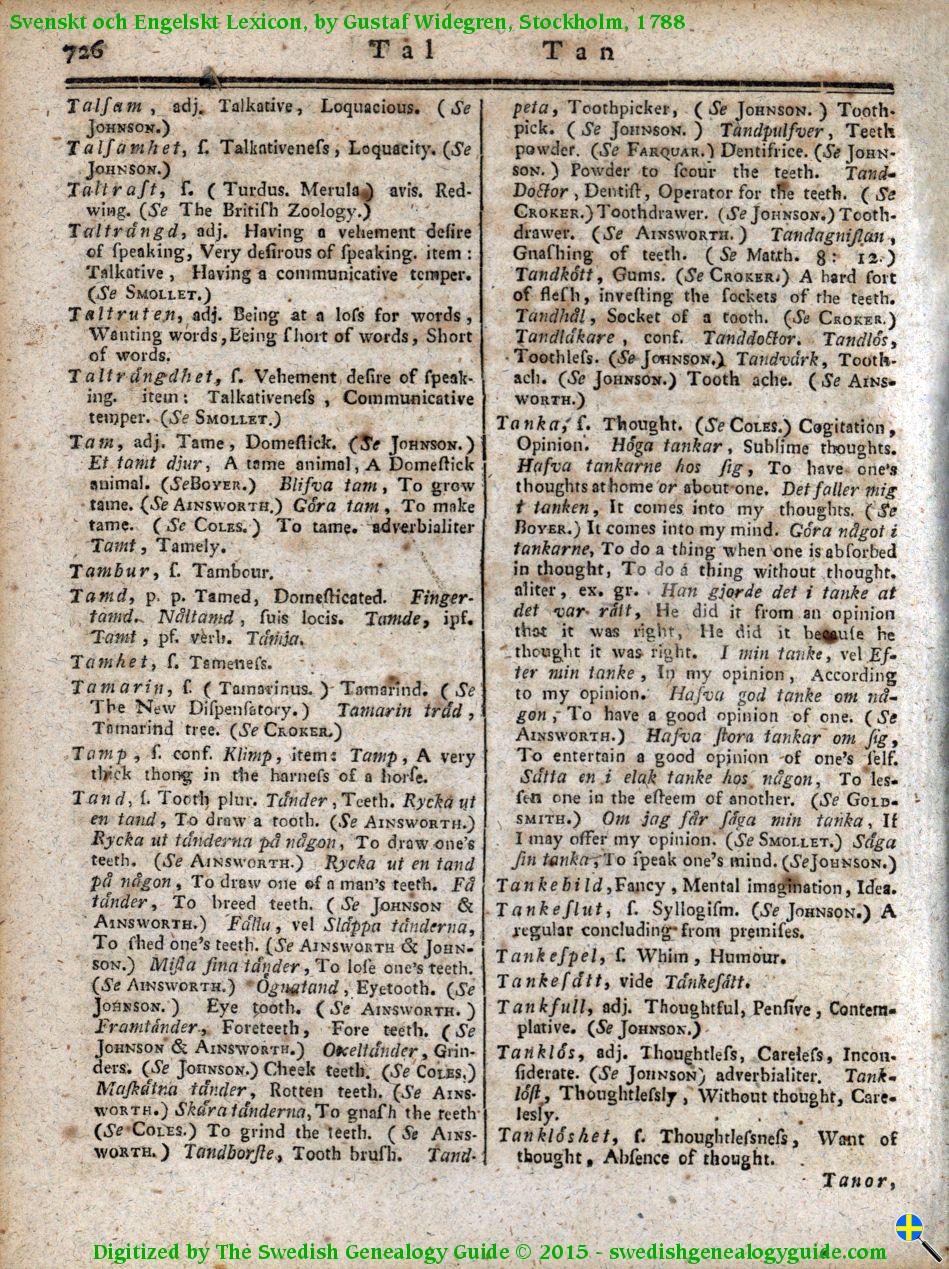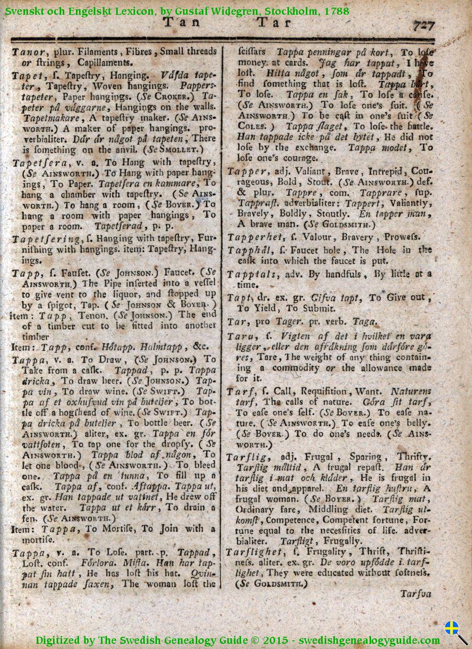 1788 Swedish English Dictionary – Letter T