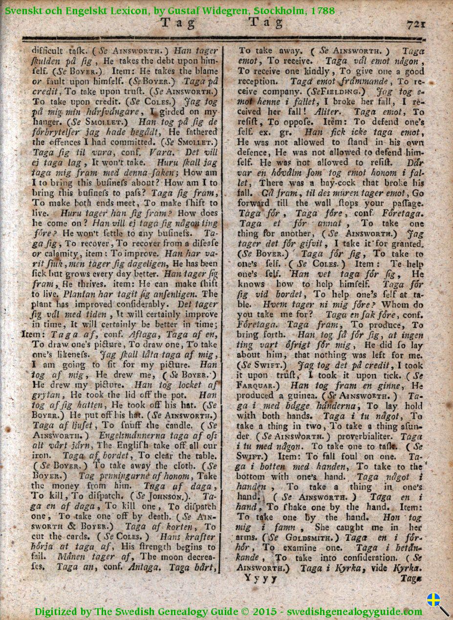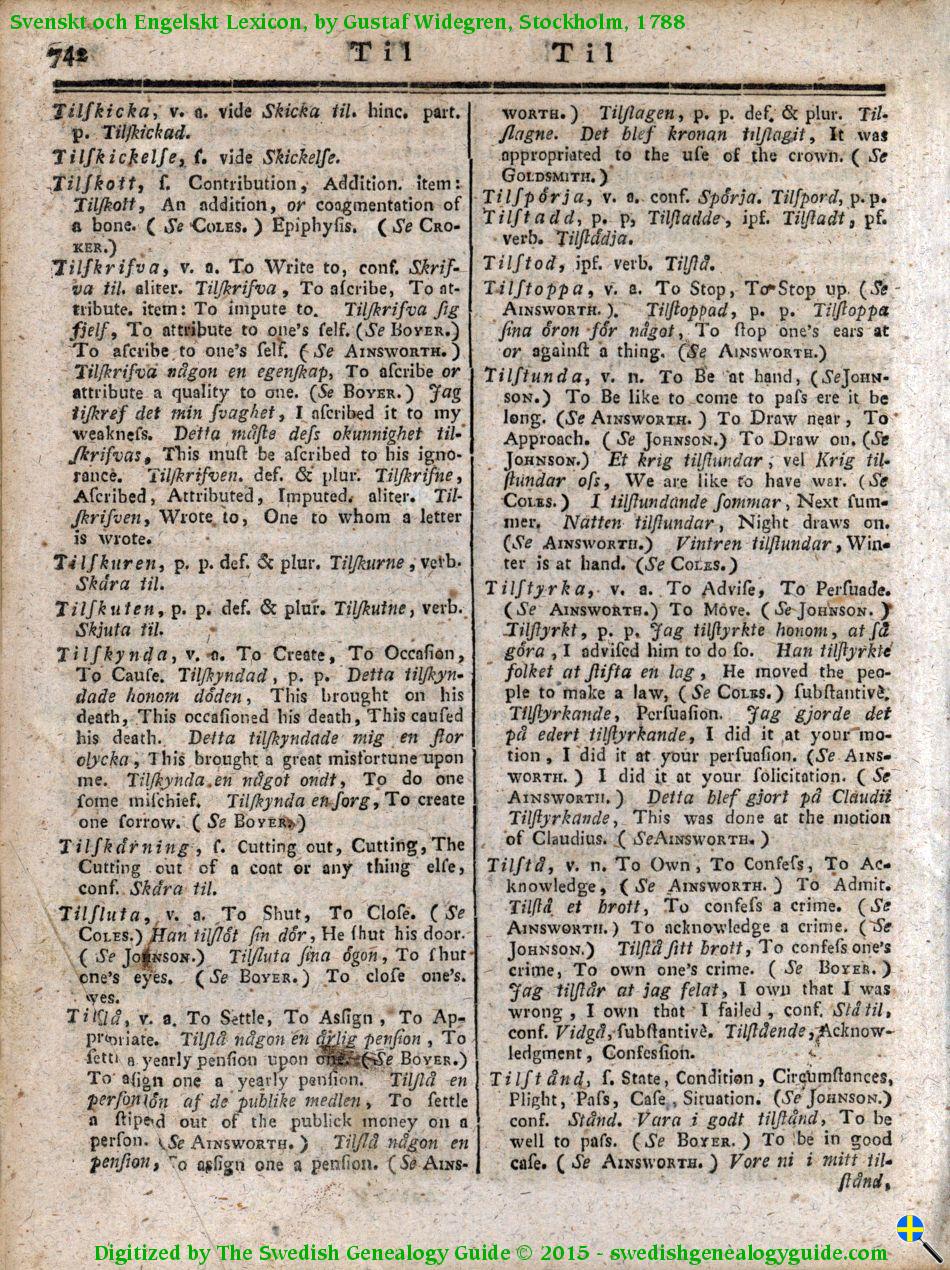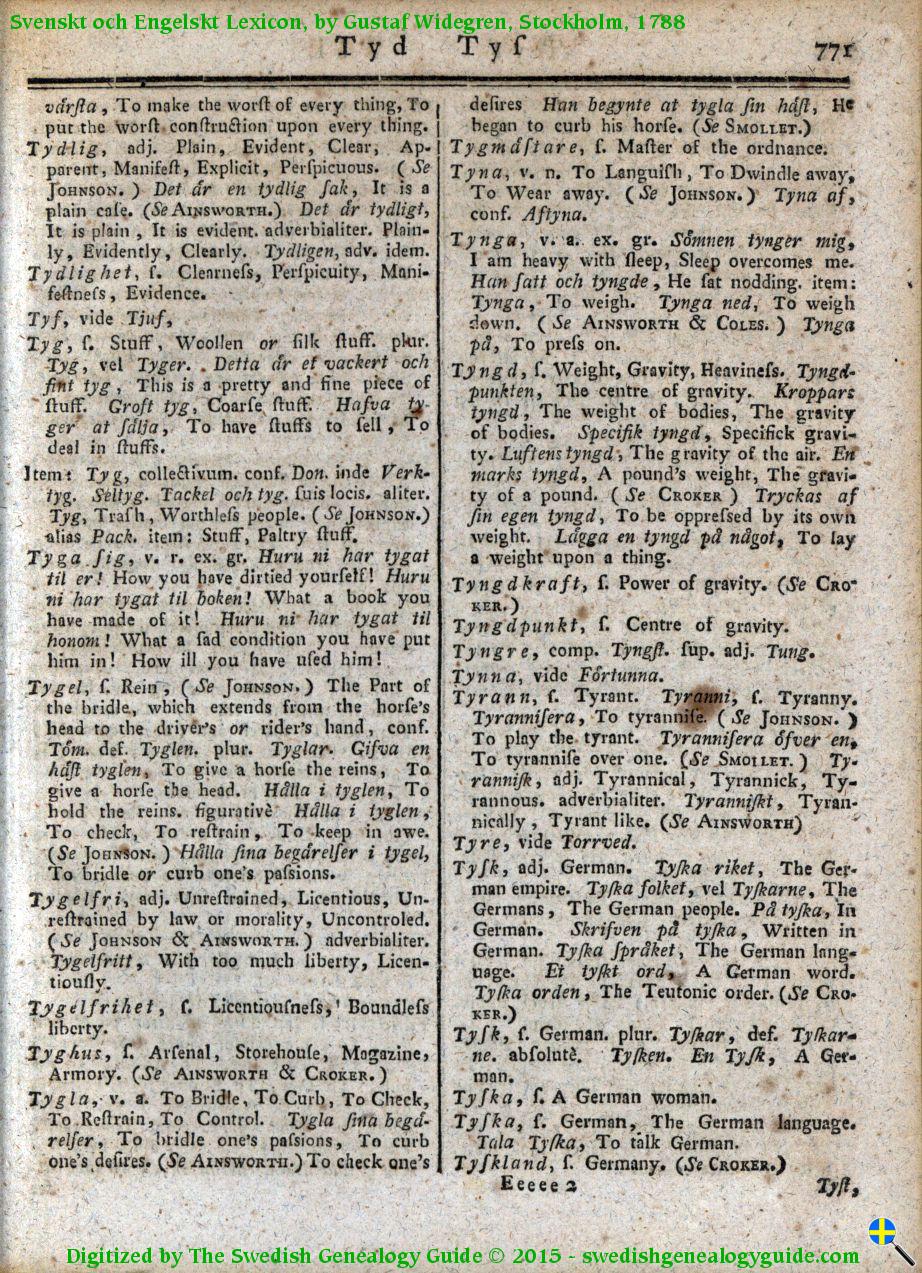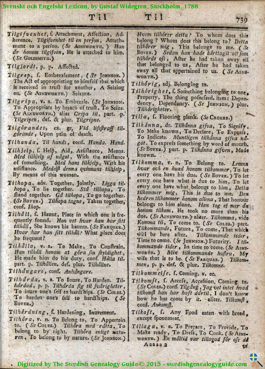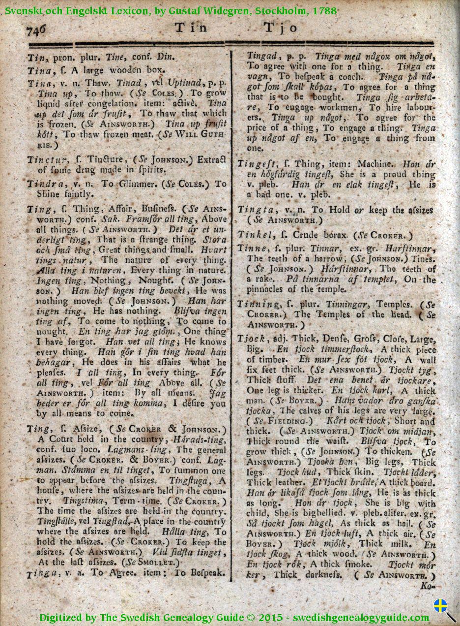 1788 Swedish English Dictionary – Letter T
