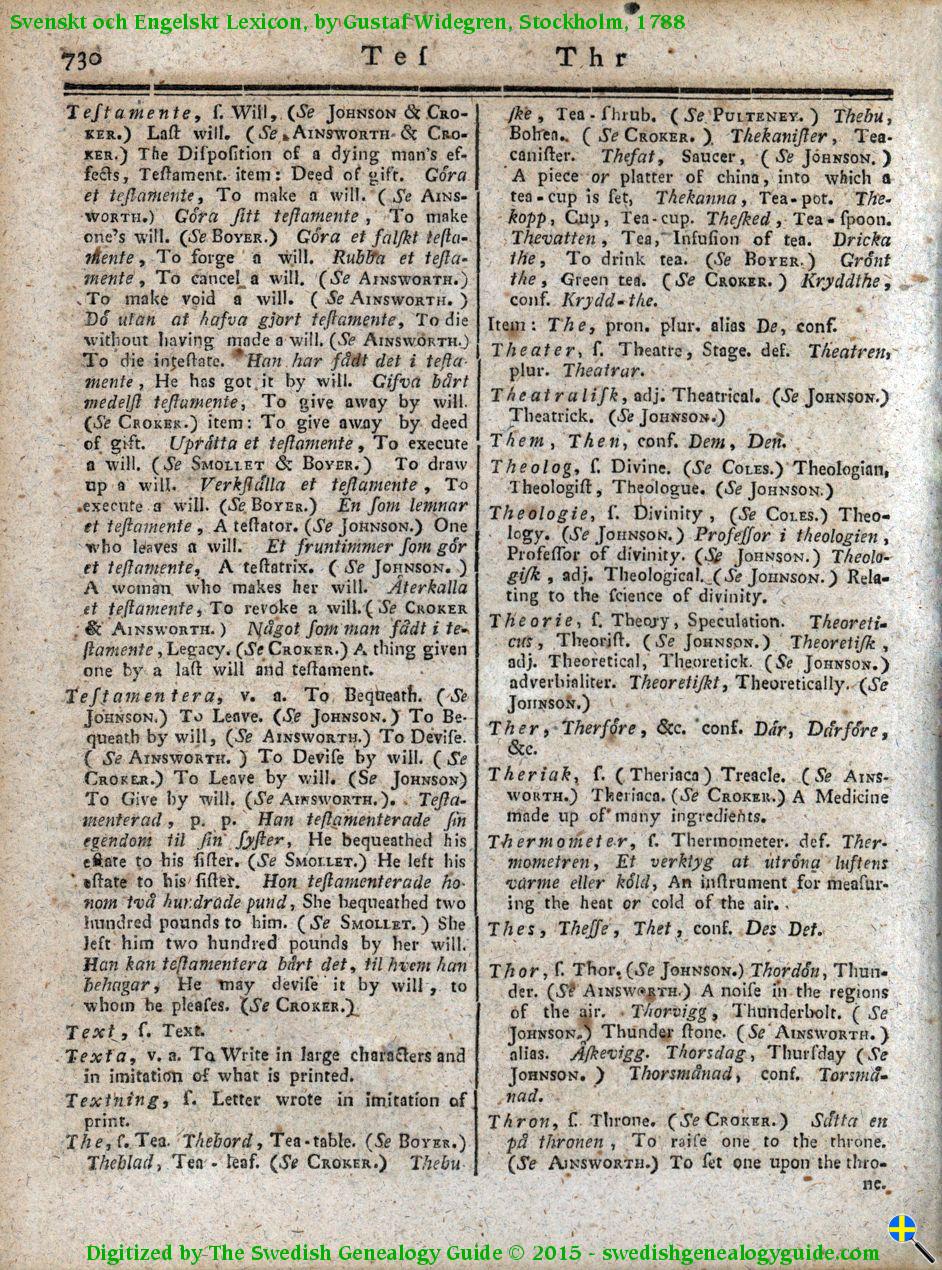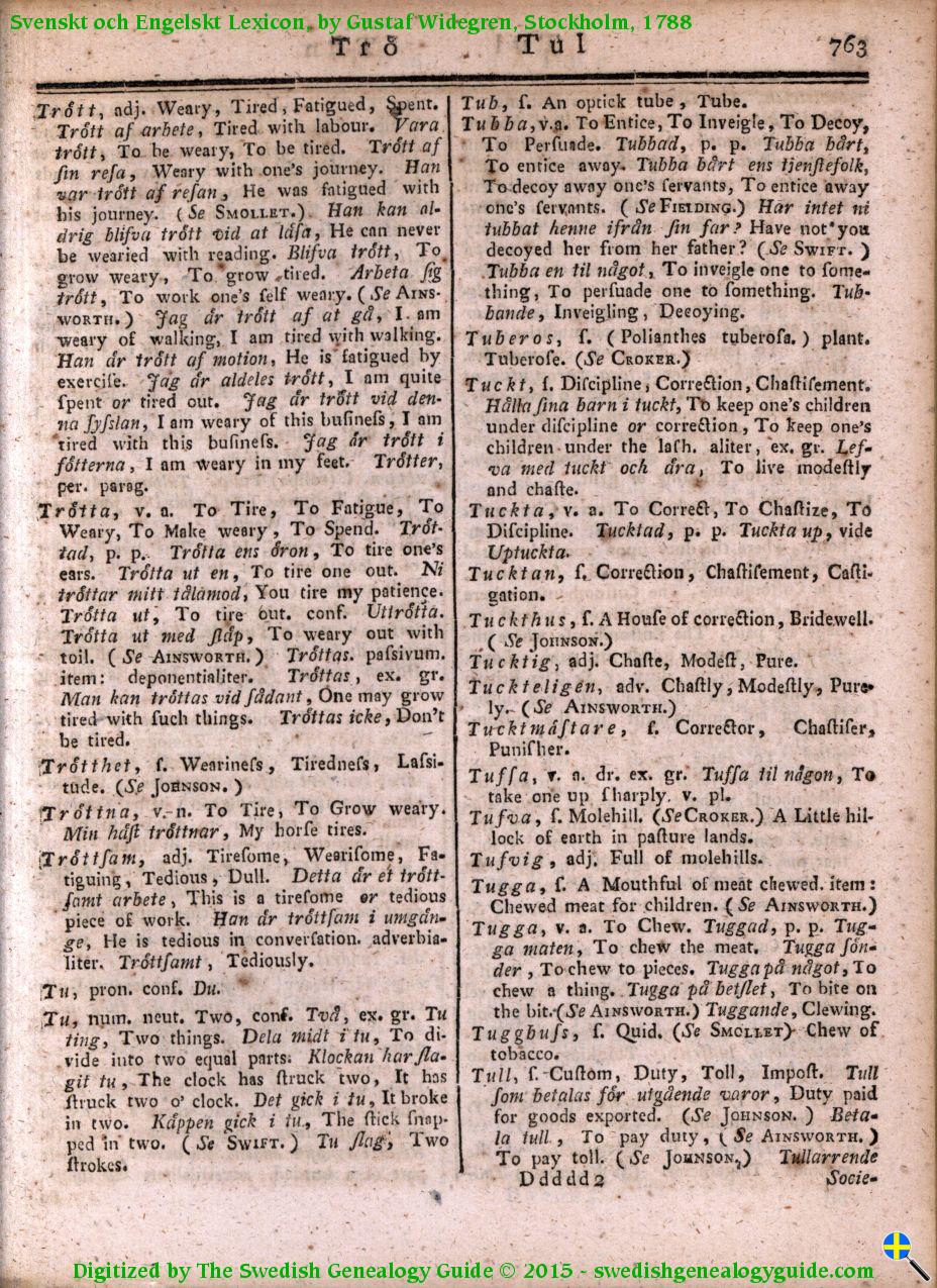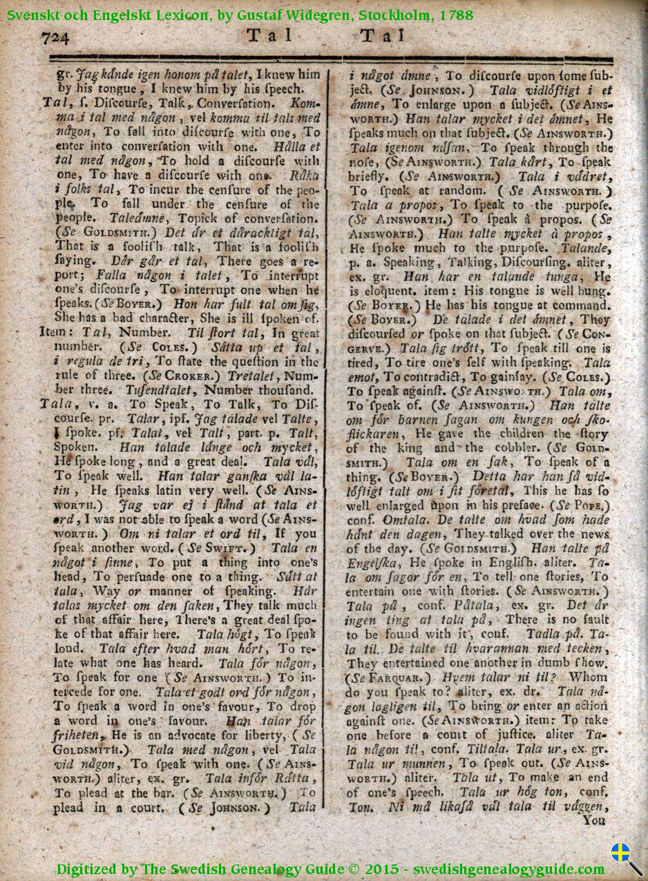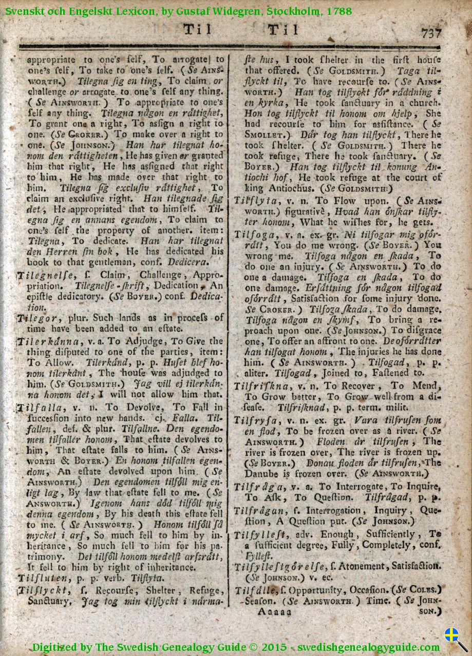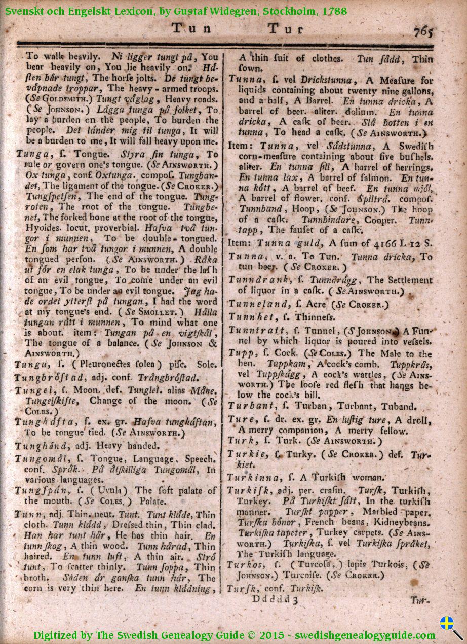 1788 Swedish English Dictionary – Letter T
