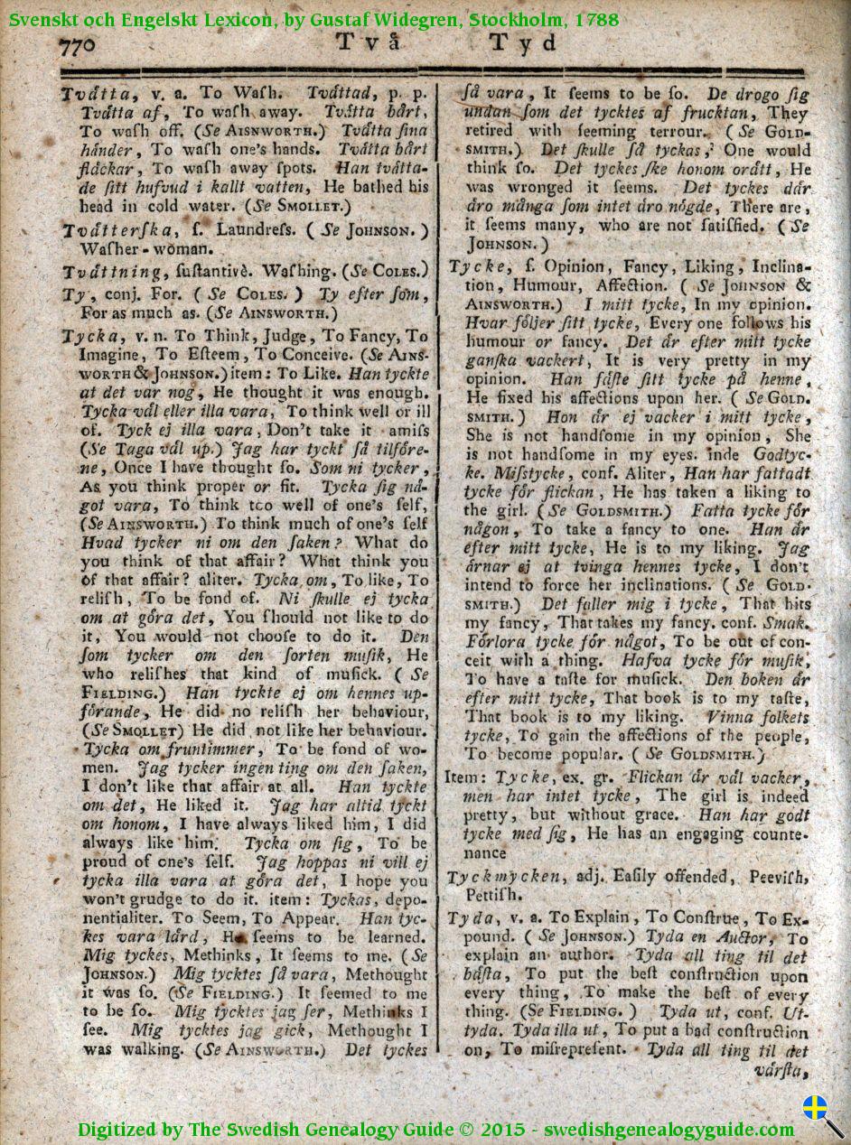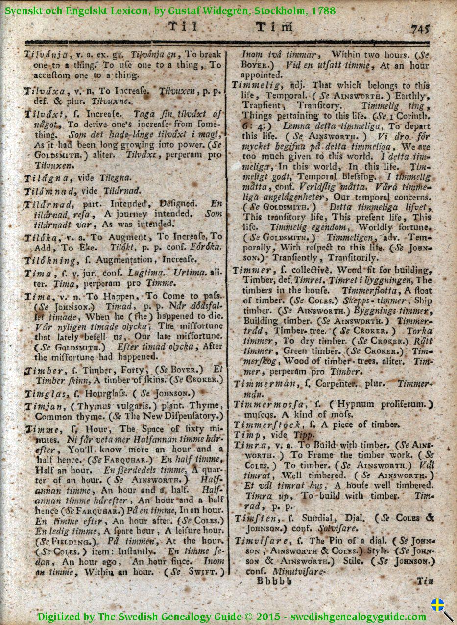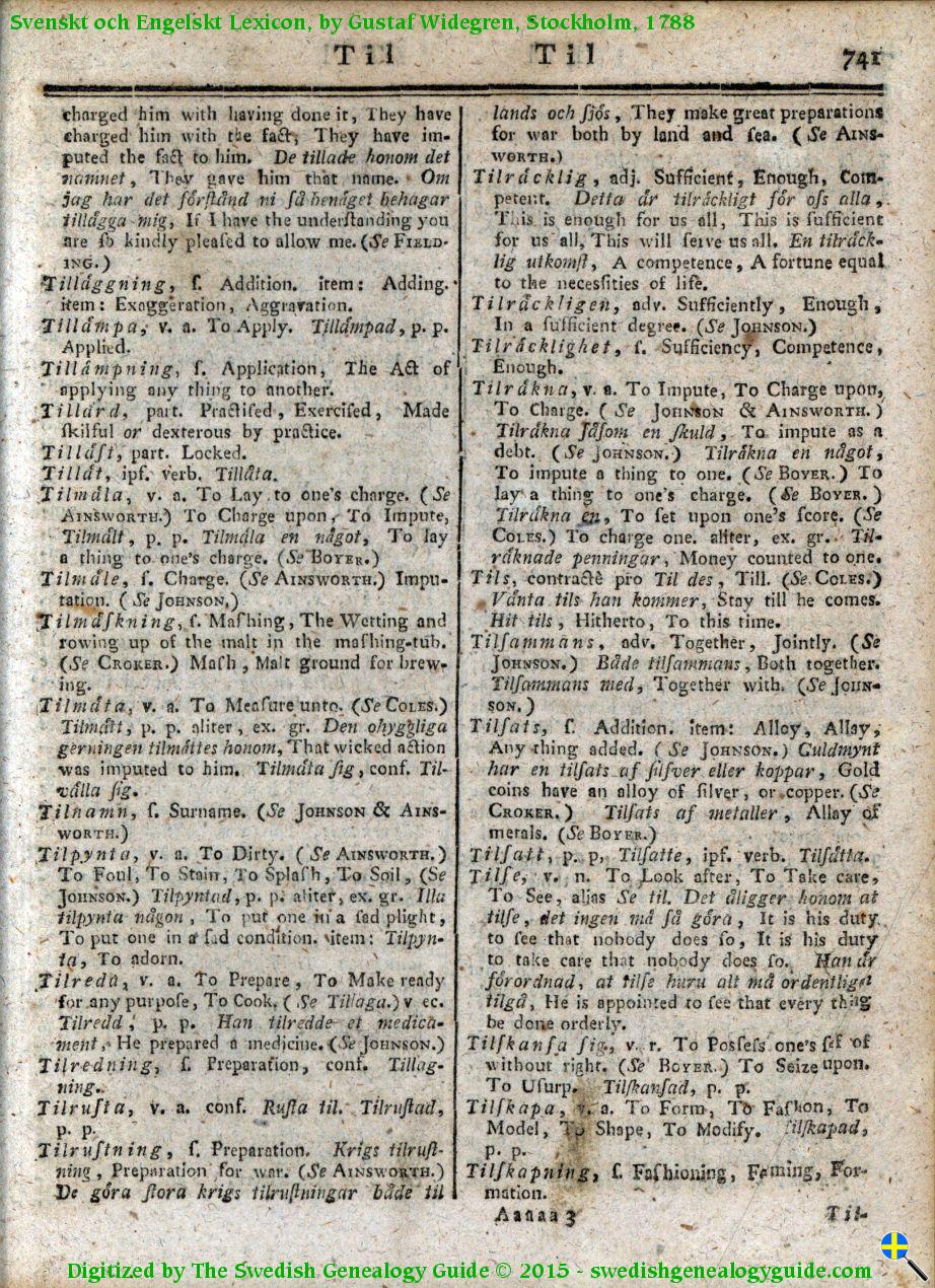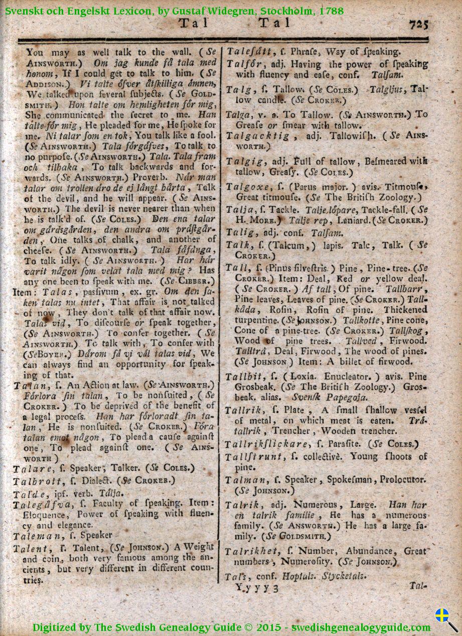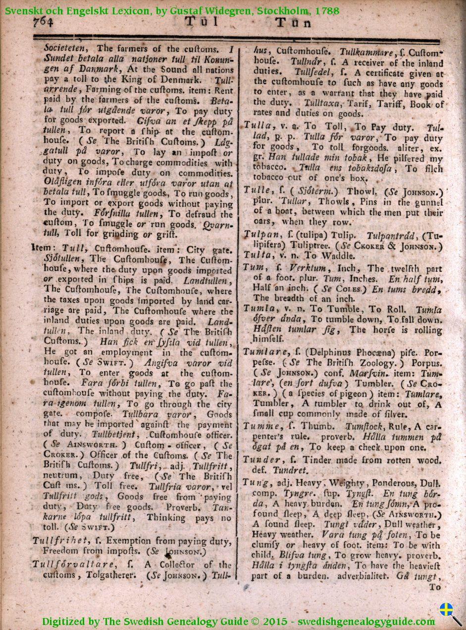 1788 Swedish English Dictionary – Letter T