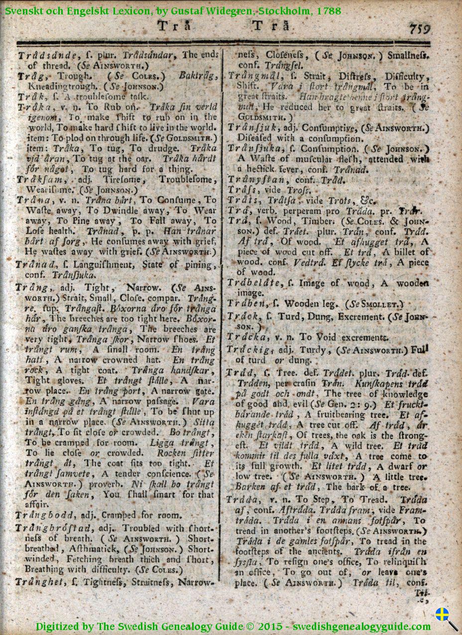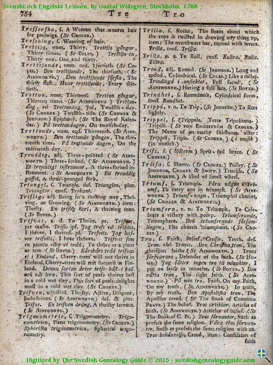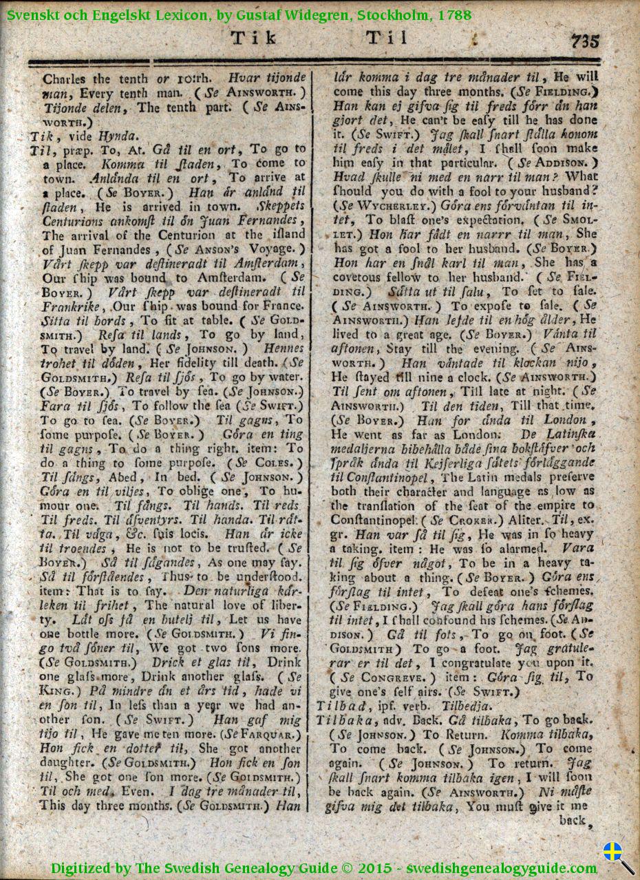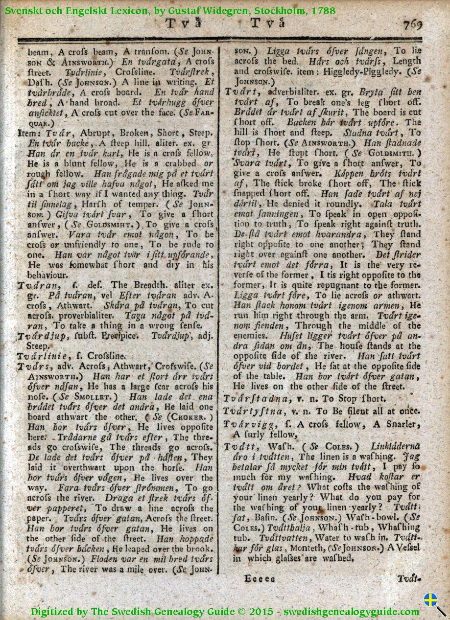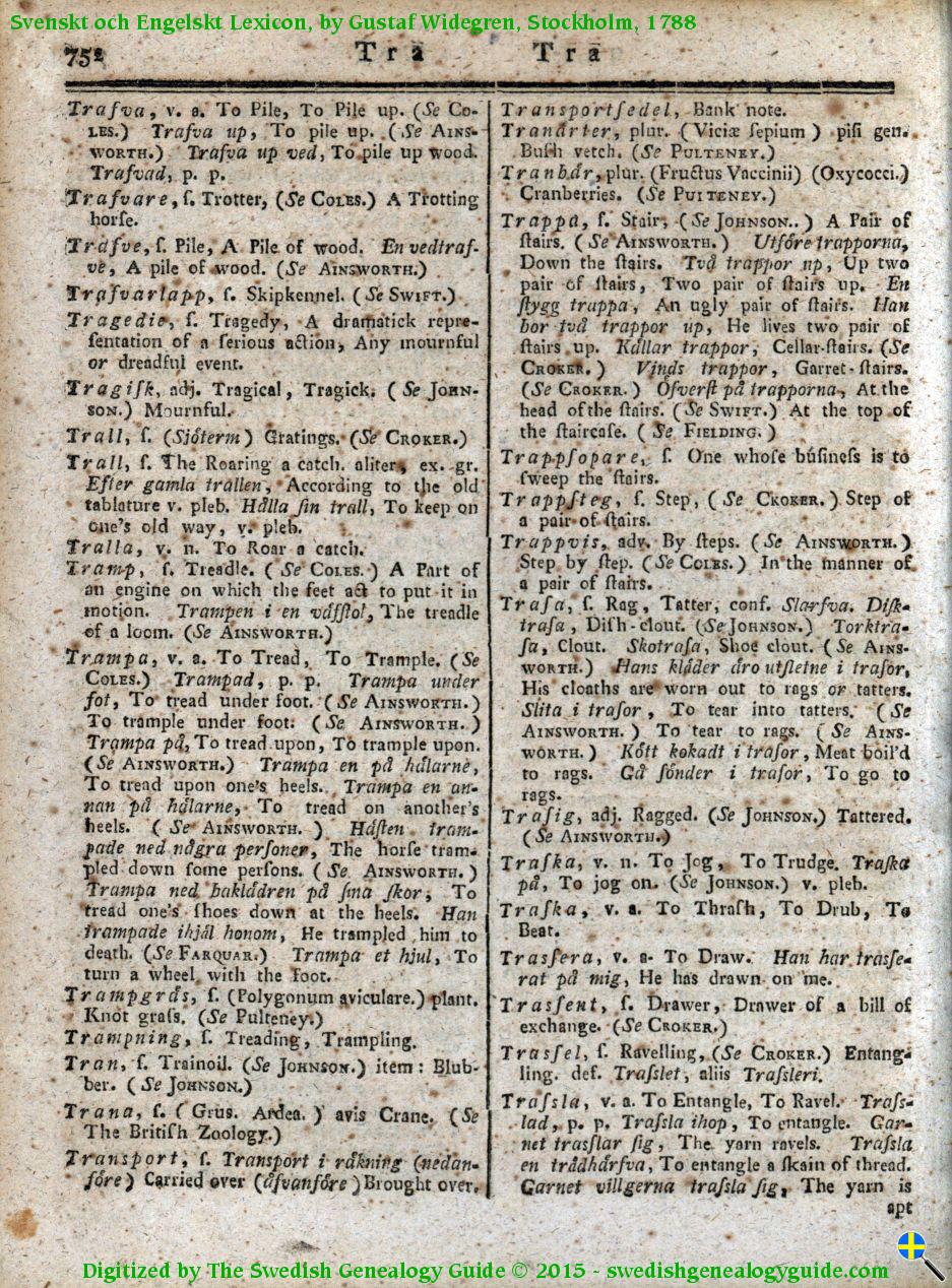 1788 Swedish English Dictionary – Letter T