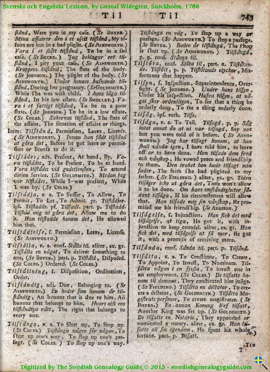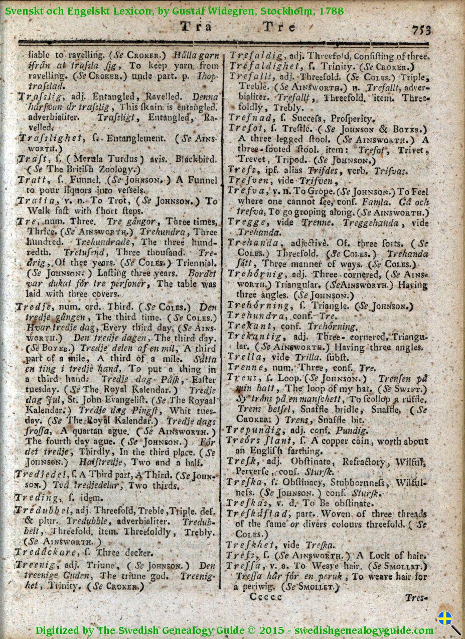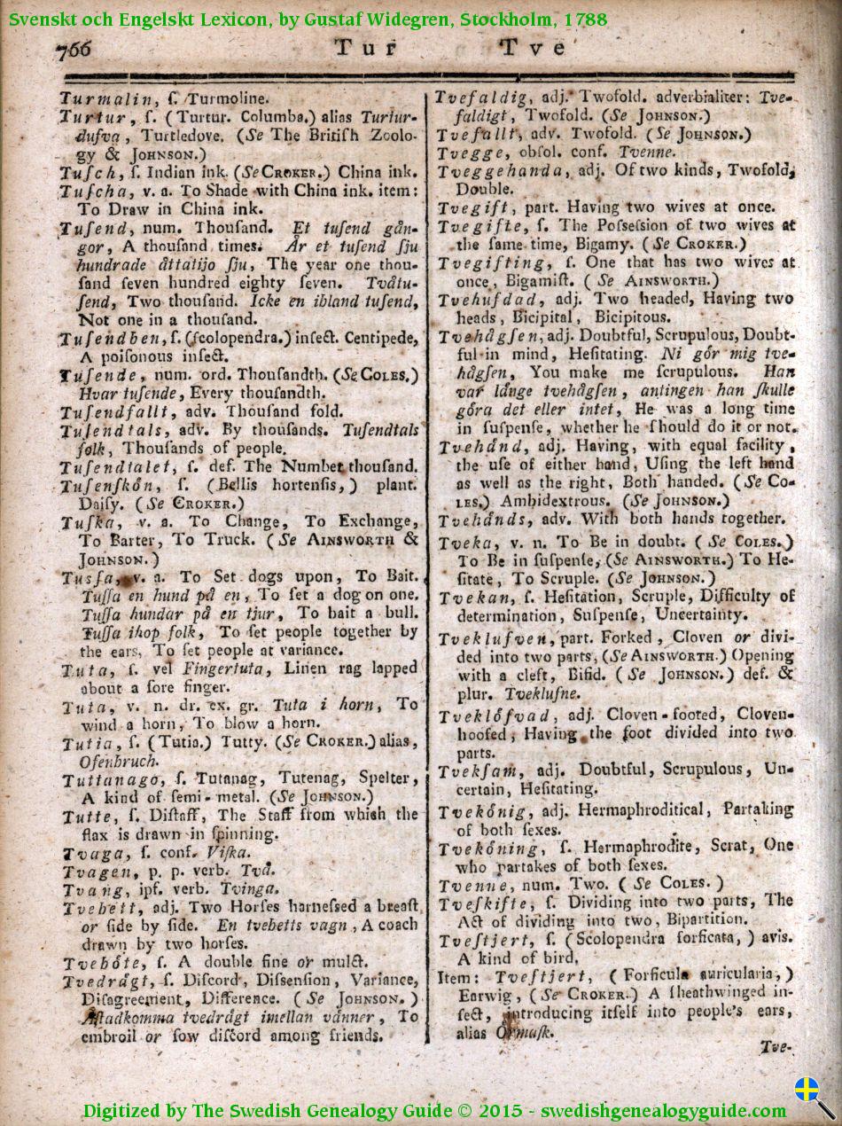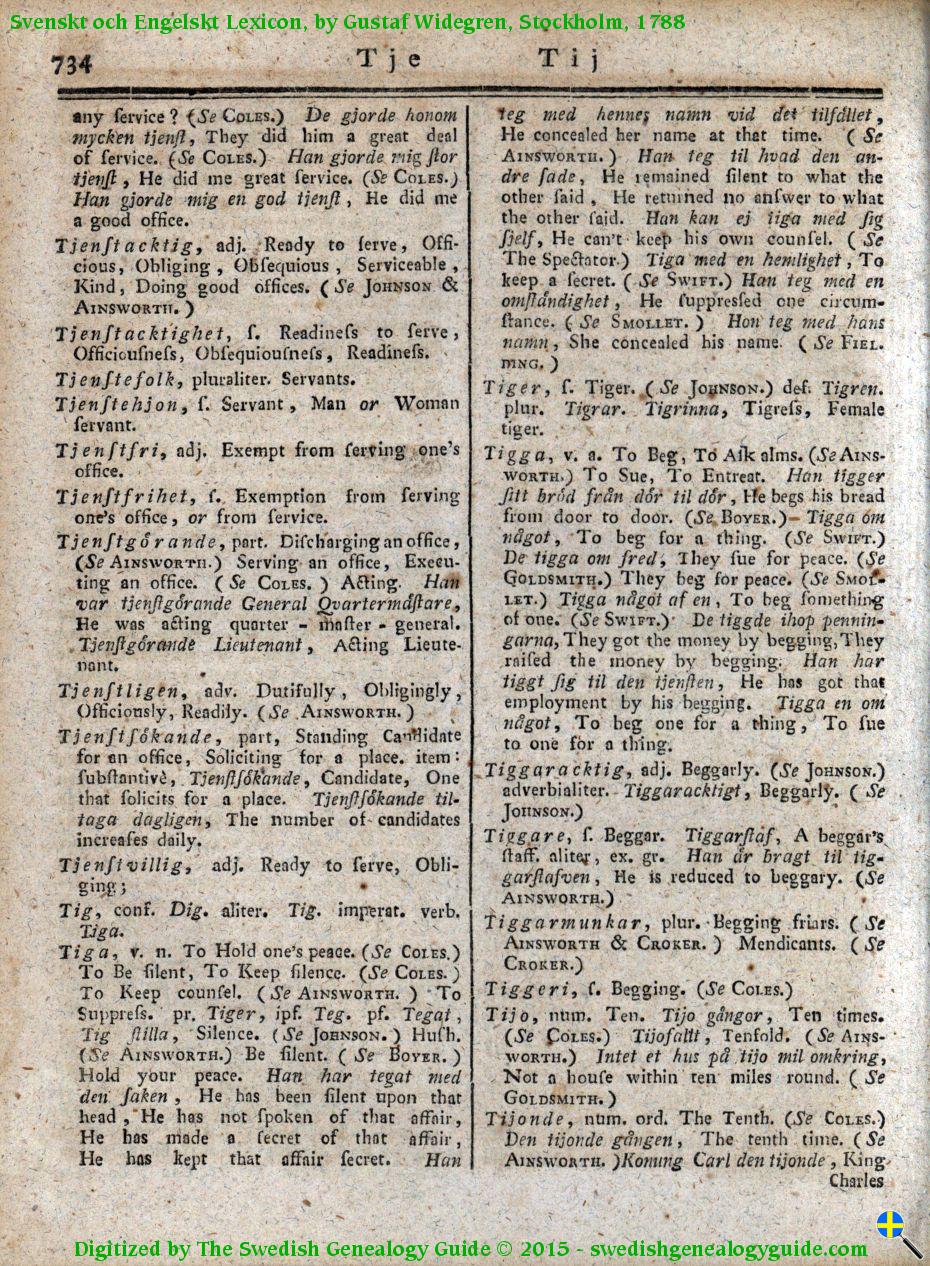 1788 Swedish English Dictionary – Letter T