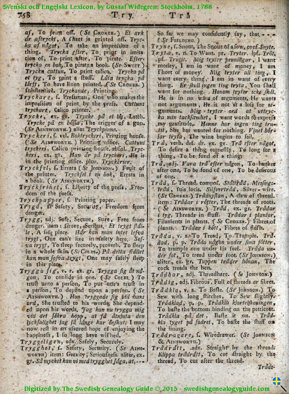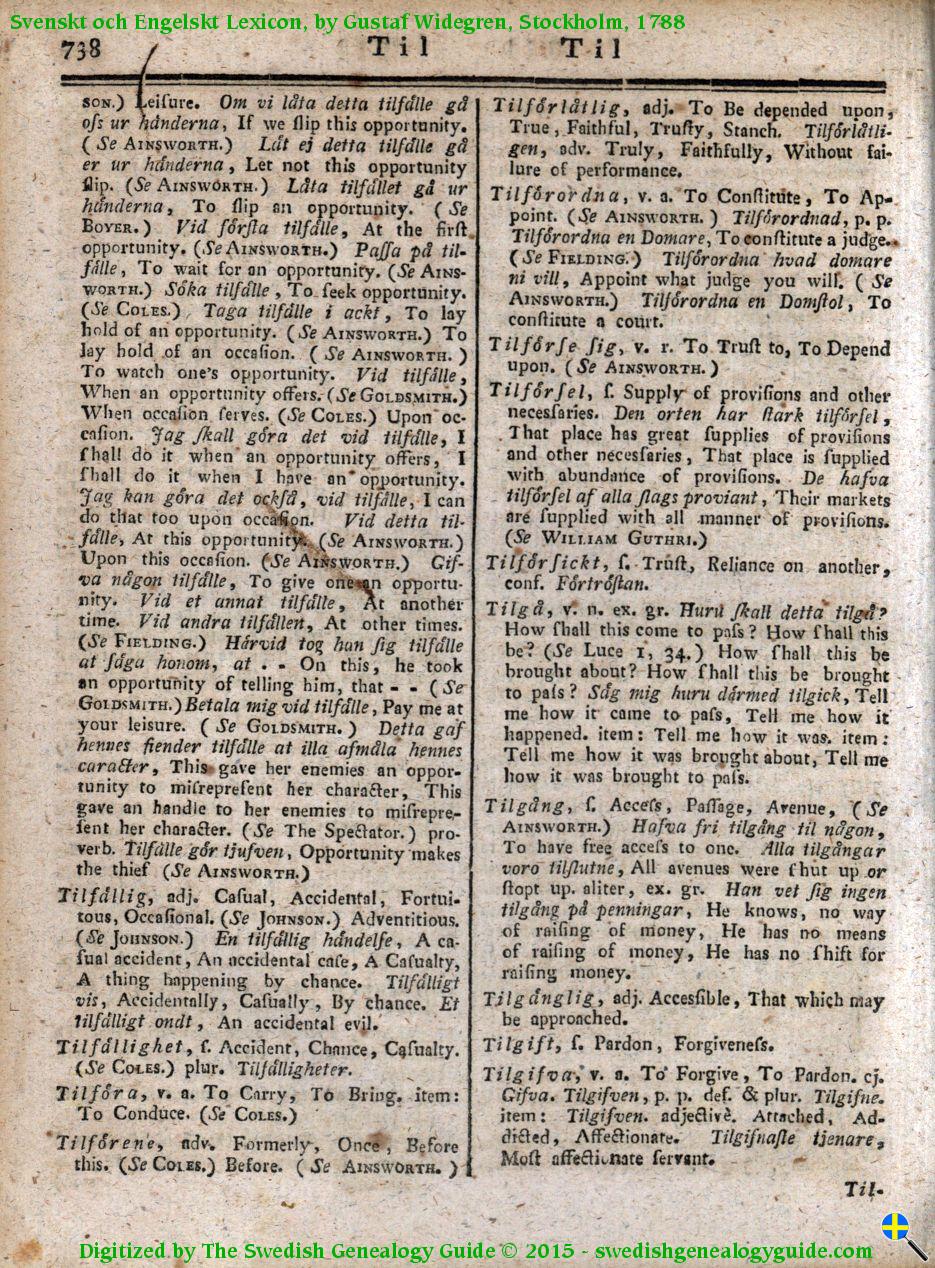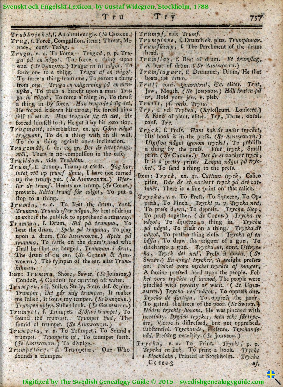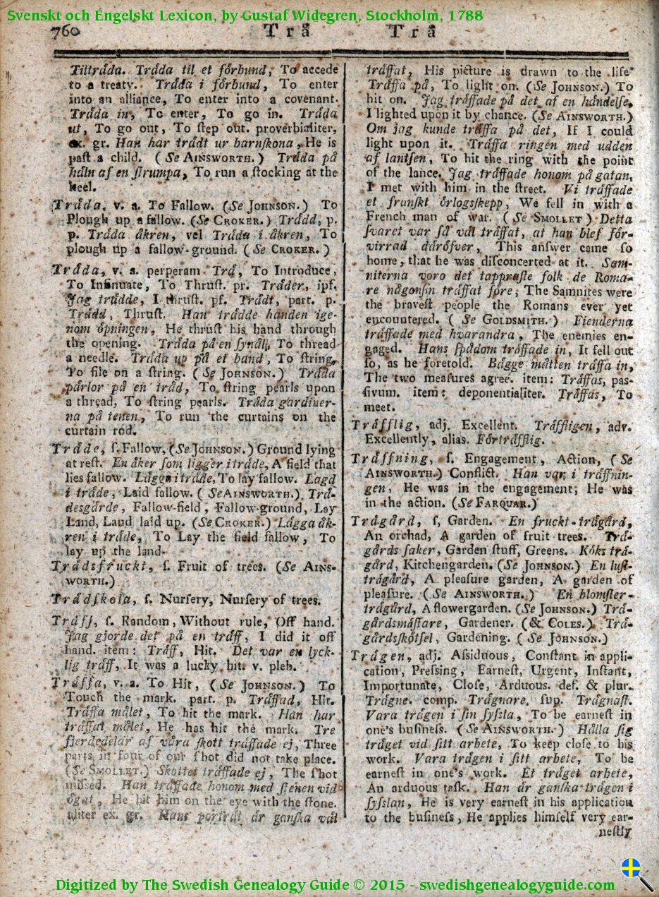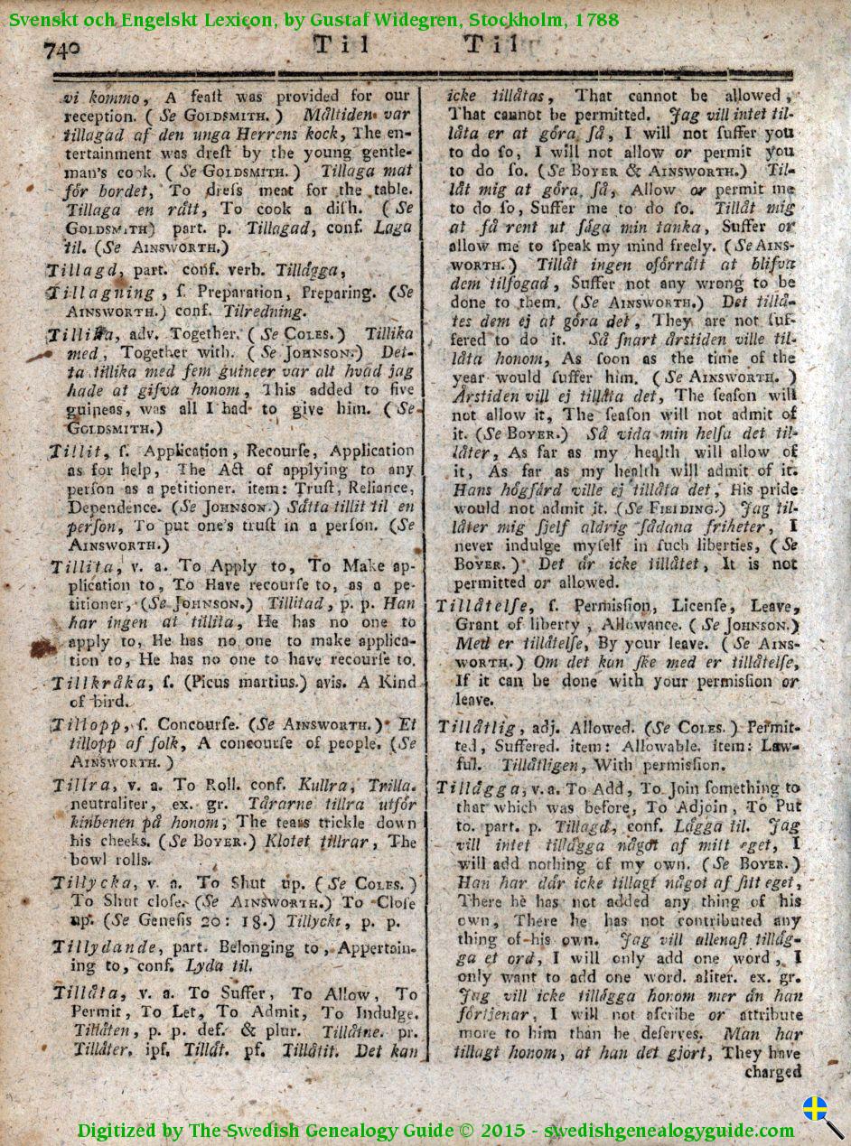 1788 Swedish English Dictionary – Letter T